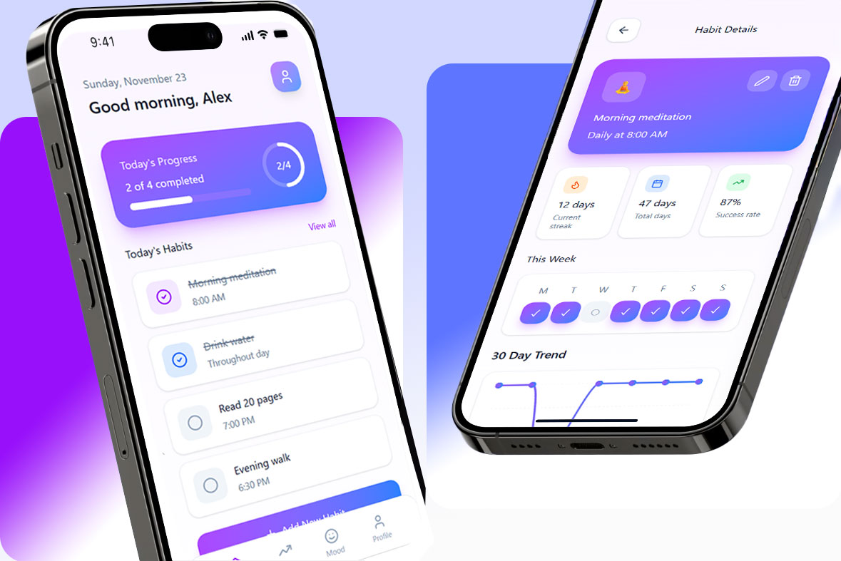A quick B2C mobile concept exploring clean layouts, soft gradients, and modern onboarding flows.